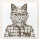 Este diseño presenta un gato vestido con una camisa y anteojos.