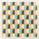 Geometric pattern with overlapping half-circles in teal, cream, brown, and peach on an orange background, creating a vibrant and retro feel.