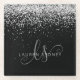 Posavasos De Vidrio Glam Black Silver Purpurina Monograma Nombre