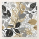 Posavasos De Vidrio Gold, Black and Grey Leaf Vine Design