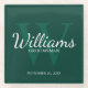 Añada un toque personal a su boda con una pastilla de vidrio personalizada. Esta montaña rusa presenta el nombre personalizado del groomsman en un estilo de fuente clásico de escritura blanco con detalles bodas en estilo de letra serif clásico blanco y monograma en estilo de fuente serif clásico de color verde esmeralda claro como fondo, sobre fondo verde esmeralda. También perfecto para el mejor hombre, padre de la novia, portador de anillo y más.