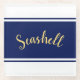 Este diseño elegante y náutico presenta una banda horizontal del centro de color azul marino, realzada con pinzas de color flotantes en un fondo blanco brillante y nítido. La elegante tipografía de escritura en el centro del diseño explica "Seashell" y puede ser personalizada.