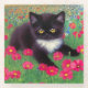 ¡Pascua de vidrio con un gato Gustav Klimt tuxedo! Este bonito gatito blanco y negro se encuentra en un campo de flores rojas, azules, blancas y naranjas. ¡Un regalo increíble para los amantes del gato y del arte austriaco!