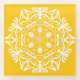 Esta mandala blanca se sienta sobre un fondo amarillo miel. Los colores son cálidos y tranquilos. Parte de la colección Erghenn Mandala.