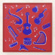 Este diseño es una mezcla de diferentes instrumentos musicales en azul y blanco con un fondo rojo. También encontrarás otros productos de la misma decoración para tu cuarto de baño. Esta imagen está disponible en una variedad de otros productos, sólo tienes que hacer clic en el enlace debajo de la foto cerca de 'Acerca de este diseño'.