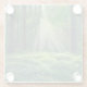 La luz del sol se filtra a través de árboles altos y densos, lo que arroja un resplandor radiante sobre un frondoso y verde suelo forestal salpicado de delicadas flores blancas. El entorno sereno evoca una sensación de paz y tranquilidad.