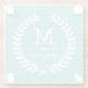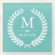 Posavasos De Vidrio Laurel Wreath Monograma Moda Azul Verde azulado