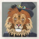 Este retrato de las características del diseño de un león en el traje de negocios y el gorra de un hombre.