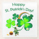 Hermosas combinaciones de piedras de champú, un leprechaun, una olla de oro, un arco iris cruzando un shamrock, y el mensaje de "¡Feliz Día de San Patricio!"