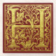 Letra decorativa encantadora H monograma inicial, tipografía de estilo caligráfico, primera letra en rojo y en oro falso (tonos amarillos con resaltados y sombras para simular textura dorada metálica).