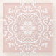 Esta mandala blanca se sienta sobre un polvoriento fondo rosado. Los colores son muy sutiles y tranquilos. Parte de la colección Losonieth Mandala.