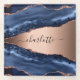 Un fondo azul oscuro y rosa dorado con impresión de piedra de mármol de ágata. Personaliza y añade tu nombre. El nombre está escrito con un estilo de letra manuscrita moderna con florituras. Para mantener las florituras, simplemente elimina el nombre de ejemplo y deja los espacios o emojis delante y detrás del nombre.