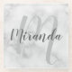 Posavasos De Vidrio Mármol Blanco con Monograma y Nombre Personalizado