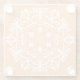 Esta mandala blanca se sienta sobre un fondo naranja claro. Los colores son alegres y enérgicos. Parte de la colección Erghenn Mandala.