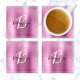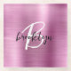 Esta elegante montaña rusa personalizada presenta un monograma y un nombre en un moderno guión en blanco y negro sobre un fondo metalizado rosado.