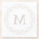 Este práctico de costa de cristal de la bebida ofrece una frontera circular del remolino rojo bonito con los puntos del oro, que enmarca su monograma. El monograma rojo se pone en el centro. El resto del diseño es transparente dejar la belleza de la demostración de cristal.