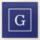 Posavasos De Vidrio Monograma inicial con marco azul marino
