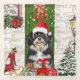 Navidades de Perro Havanés sentados afuera de casa decorada con flores de Navidad, el árbol de Navidad es una idea de regalo perfecta para Navidades amantes del perro.