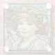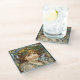 Una montaña rusa de vidrio cuadrado con un diseño de vidrio teñido, que representa a un niño Navidad coronado con hojas y bayas huecas.