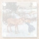 Baldosa de montaña que muestra a una niña besando un alce en la nieve.