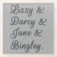 Un diseño lindo, perfecto para cualquiera que ame las novelas de Jane Austen. Parejas de Orgullo y Prejuicio "Lizzy & Darcy & Jane & Bingley" con un fondo gris. ¡Acentúa tu estilo y espacio con este bonito arte!