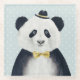 Este asmart de las características del diseño vistió el oso de panda en un gorra y la pajarita en un fondo suave del lunar.