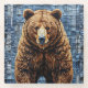 Vibrantes obras de arte que representan a un oso con un rico abrigo de piel en textura, ambientado en un fondo de mosaico de tonos azules y grises. El oso se erige imponente y reavivado, captando la atención con sus características realistas.