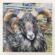 Un diseño fotográfico de un hermoso carnero con cuernos magníficos.