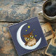 Posavasos De Vidrio Owl Moon Blue Cute Stars