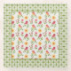 El panel de inspiración retro caprichosa presenta pájaros rosados en ramas con flores amarillas rodeados de un patrón de cuadrícula de puntos verdes
