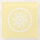Esta mandala blanca se sienta sobre un fondo amarillo claro. Los colores son alegres y tranquilos. Parte de la colección Bleujenn Mandala.