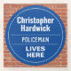Un regalo divertido de estilo conmemorativo de la placa de la pared en forma de montaña rusa de vidrio para un policía. Placa azul y blanca. Edite el diseño para cambiar la redacción de manera que se ajuste al destinatario del regalo.