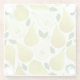 Patrón de peras verdes vibrantes en tonos amarillos y verdes con hojas verdes brillantes. Algunas de las peras se han reducido a la mitad para mostrar los jugosos interiores y semillas.