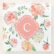 Un bonito patrón floral de acuarela femenina en tonos rosa y melocotón con un marco decorativo a juego alrededor de su monograma personalizado. Edite el monograma de ejemplo que se muestra en la plantilla de diseño con el primer.
