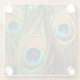 Una hermosa montaña de vidrio de las plumas de pavo real con una fotografía de algunas preciosas plumas de pavo real.