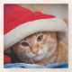 Posavasos De Vidrio Pequeño gatito en gorra rojo del navidad