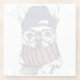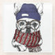 Este retrato de un acogedor perro de invierno presenta Bulldog francés con bufanda de punto, beanie y anteojos