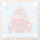 Posavasos De Vidrio Perro Collie Fronterizo En Coche Con Santa Claus