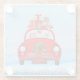 Posavasos De Vidrio Perro maltés en auto con Santa Claus