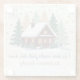 Set your holiday table with these charming personalized coasters, featuring a cozy winter cabin and the phrase “Where winter feels like home.”