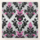 Sophisticated Damask style glass coaster in Pink Black, and Silver.