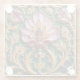 Flor de loto rosa de cerámica tallada con hojas doradas y fondo verde, composición simétrica, detalles intrincados, diseño ornamental, disposición floral, patrón decorativo, arte botánico.