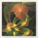 Posavasos De Vidrio Planta de fantasía Resumen Fractal Verde Rust Brow