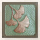 Este fondo verde de montaña de vidrio de la hoja de Gingko texturado. Las hojas de ginkgo son de cobre metálico. El marco exterior tiene un aspecto de madera. Este es un regalo perfecto para los amantes de Bungalow. Esto viene de una baldosa hecha a mano por el fabricante de baldosas de Oregón Fay Jones Day.