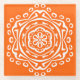 Esta mandala blanca se sienta sobre un fondo naranja de amapola brillante. El color es luminoso y creativo. Parte de la colección Pympbys Mandala. Es posible que este diseño no se imprima tan brillante como aparece en línea.