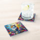 Posavasos De Vidrio Pretty Colorful Impasto Cat and Flowers