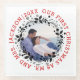 Primera Navidad como Mr. y Mrs. Black wreath fotovidrio. Este diseño festivo presenta una foto de recién casados en un marco de corona de Navidades negros y el texto: "NUESTRA PRIMERA NAVIDAD COMO MR. Y la SRA. " en rojo.