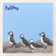 Los ataúdes descansan sobre las rocas. También aparece un texto en personalizable que dice "Puffins". El atlántico Puffin (Fratercula Arctica) se alimenta principalmente de un submarinismo en el agua. Se reproducen en grandes colonias en acantilados costeros o islas costeras en el Atlántico Norte. Los ataúdes se deshacen de las coloridas partes exteriores de sus facturas después de la temporada de reproducción, dejando un pico más pequeño y más suave. Sus cortas alas están adaptadas para nadar con una técnica de vuelo bajo el agua. En el aire, golpean sus alas rápidamente (hasta 400 veces por minuto) en vuelo rápido, a menudo volando bajo sobre la superficie del océano.