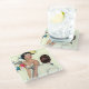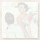 Artista:Joe DeMers | Mujer con un vestido de rayas de cebra y un alfiler de flores rojas inclinado en una silla hablando con un hombre con traje blanco