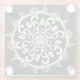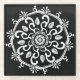 Esta mandala blanca se sienta sobre un fondo negro. Parte de la colección Payon Mandala.